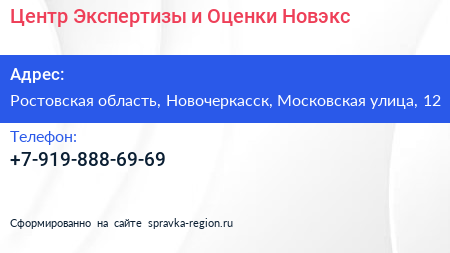 Центр Экспертизы и Оценки Новэкс по адресу Ростовская область, Новочеркасск, Московская улица, 12 в дальнейшем Организация, размещена в следующих категориях: