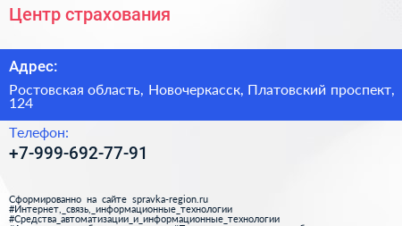 Центр страхования по адресу Ростовская область, Новочеркасск, Платовский проспект, 124 в дальнейшем Организация, размещена в следующих категориях: