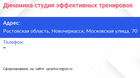 Динамика, студия эффективных тренировок по адресу Ростовская область, Новочеркасск, Московская улица, 70 в дальнейшем Организация, размещена в следующих категориях: