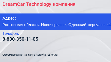 DreamCar Technology, компания по адресу Ростовская область, Новочеркасск, Одесский переулок, 41 в дальнейшем Организация, размещена в следующих категориях: