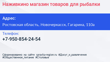 Наживкино, магазин товаров для рыбалки по адресу Ростовская область, Новочеркасск, Гагарина, 110а в дальнейшем Организация, размещена в следующих категориях: