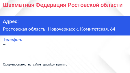 Шахматная Федерация Ростовской области по адресу Ростовская область, Новочеркасск, Комитетская, 64 в дальнейшем Организация, размещена в следующих категориях: