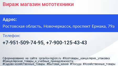 Вираж, магазин мототехники по адресу Ростовская область, Новочеркасск, проспект Ермака, 79а в дальнейшем Организация, размещена в следующих категориях: