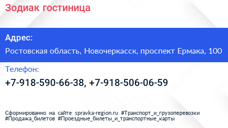 Зодиак, гостиница по адресу Ростовская область, Новочеркасск, проспект Ермака, 100 в дальнейшем Организация, размещена в следующих категориях: