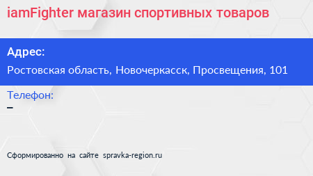 iamFighter, магазин спортивных товаров по адресу Ростовская область, Новочеркасск, Просвещения, 101 в дальнейшем Организация, размещена в следующих категориях: