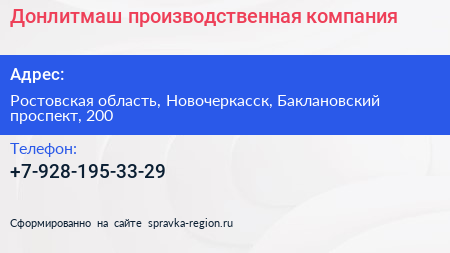 Донлитмаш, производственная компания по адресу Ростовская область, Новочеркасск, Баклановский проспект, 200 в дальнейшем Организация, размещена в следующих категориях: