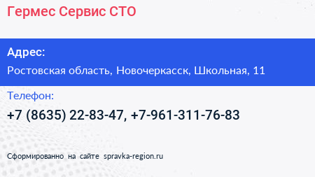 Гермес-Сервис, СТО по адресу Ростовская область, Новочеркасск, Школьная, 11 в дальнейшем Организация, размещена в следующих категориях: