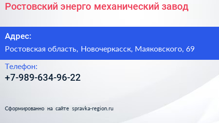 Ростовский энерго-механический завод по адресу Ростовская область, Новочеркасск, Маяковского, 69 в дальнейшем Организация, размещена в следующих категориях: