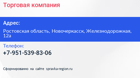 Торговая компания по адресу Ростовская область, Новочеркасск, Железнодорожная, 12а в дальнейшем Организация, размещена в следующих категориях: