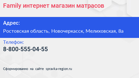 Family, интернет-магазин матрасов по адресу Ростовская область, Новочеркасск, Мелиховская, 8а в дальнейшем Организация, размещена в следующих категориях: