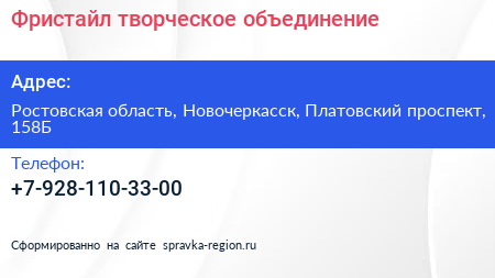 Фристайл, творческое объединение по адресу Ростовская область, Новочеркасск, Платовский проспект, 158Б в дальнейшем Организация, размещена в следующих категориях: