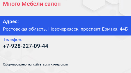 Много Мебели, салон по адресу Ростовская область, Новочеркасск, проспект Ермака, 44Б в дальнейшем Организация, размещена в следующих категориях: