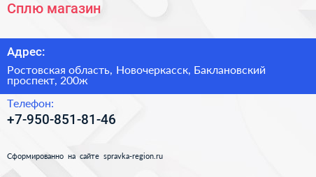 Сплю, магазин по адресу Ростовская область, Новочеркасск, Баклановский проспект, 200ж в дальнейшем Организация, размещена в следующих категориях: