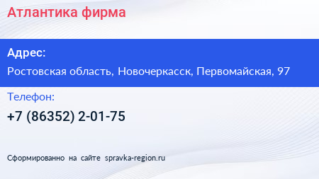 Атлантика, фирма по адресу Ростовская область, Новочеркасск, Первомайская, 97 в дальнейшем Организация, размещена в следующих категориях: