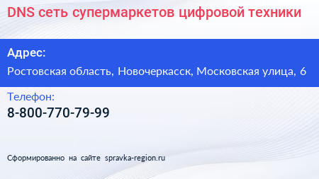 DNS, сеть супермаркетов цифровой техники по адресу Ростовская область, Новочеркасск, Московская улица, 6 в дальнейшем Организация, размещена в следующих категориях: