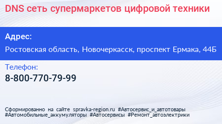 DNS, сеть супермаркетов цифровой техники по адресу Ростовская область, Новочеркасск, проспект Ермака, 44Б в дальнейшем Организация, размещена в следующих категориях: