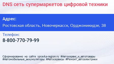 DNS, сеть супермаркетов цифровой техники по адресу Ростовская область, Новочеркасск, Орджоникидзе, 38 в дальнейшем Организация, размещена в следующих категориях: