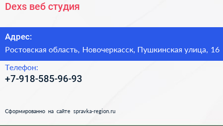 Dexs, веб-студия по адресу Ростовская область, Новочеркасск, Пушкинская улица, 16 в дальнейшем Организация, размещена в следующих категориях: