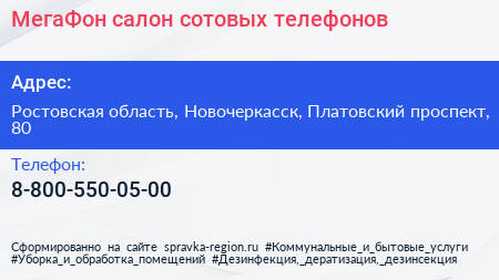 МегаФон, салон сотовых телефонов по адресу Ростовская область, Новочеркасск, Платовский проспект, 80 в дальнейшем Организация, размещена в следующих категориях: