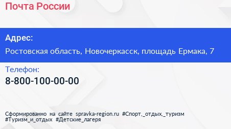 Почта России по адресу Ростовская область, Новочеркасск, площадь Ермака, 7 в дальнейшем Организация, размещена в следующих категориях: