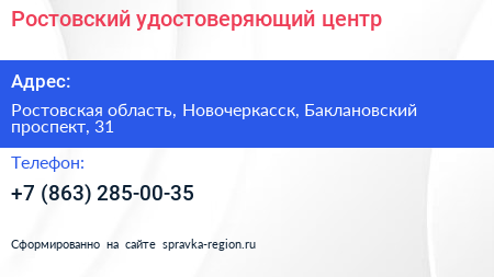 Ростовский удостоверяющий центр по адресу Ростовская область, Новочеркасск, Баклановский проспект, 31 в дальнейшем Организация, размещена в следующих категориях: