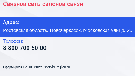 Связной, сеть салонов связи по адресу Ростовская область, Новочеркасск, Московская улица, 20 в дальнейшем Организация, размещена в следующих категориях: