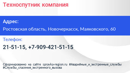 Техноспутник, компания по адресу Ростовская область, Новочеркасск, Маяковского, 60 в дальнейшем Организация, размещена в следующих категориях: