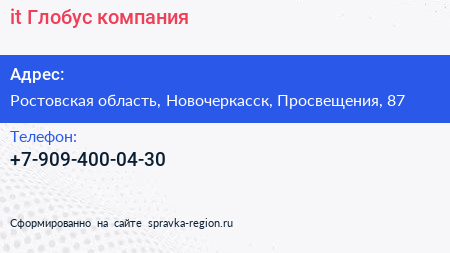 it Глобус, компания по адресу Ростовская область, Новочеркасск, Просвещения, 87 в дальнейшем Организация, размещена в следующих категориях: