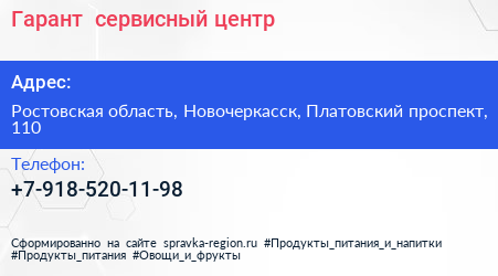 Гарант+, сервисный центр по адресу Ростовская область, Новочеркасск, Платовский проспект, 110 в дальнейшем Организация, размещена в следующих категориях: