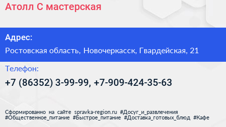 Атолл-С, мастерская по адресу Ростовская область, Новочеркасск, Гвардейская, 21 в дальнейшем Организация, размещена в следующих категориях: