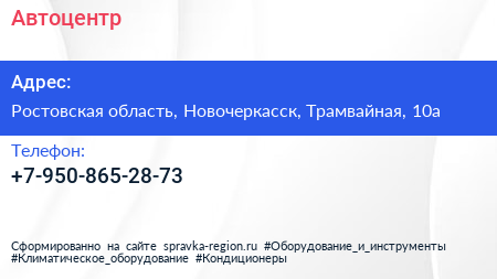 Автоцентр по адресу Ростовская область, Новочеркасск, Трамвайная, 10а в дальнейшем Организация, размещена в следующих категориях: