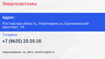 Энергосистемы по адресу Ростовская область, Новочеркасск, Баклановский проспект, 14 в дальнейшем Организация, размещена в следующих категориях:
