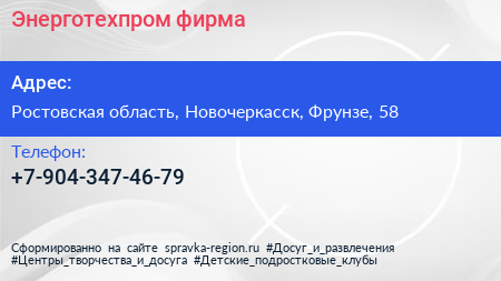 Энерготехпром, фирма по адресу Ростовская область, Новочеркасск, Фрунзе, 58 в дальнейшем Организация, размещена в следующих категориях: