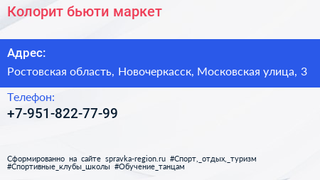 Колорит, бьюти-маркет по адресу Ростовская область, Новочеркасск, Московская улица, 3 в дальнейшем Организация, размещена в следующих категориях: