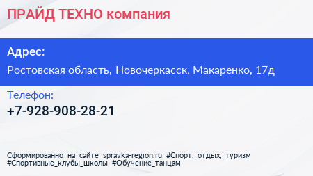 ПРАЙД-ТЕХНО, компания по адресу Ростовская область, Новочеркасск, Макаренко, 17д в дальнейшем Организация, размещена в следующих категориях: