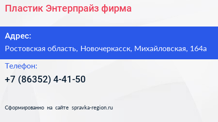 Пластик Энтерпрайз, фирма по адресу Ростовская область, Новочеркасск, Михайловская, 164а в дальнейшем Организация, размещена в следующих категориях: