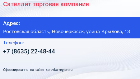 Сателлит, торговая компания по адресу Ростовская область, Новочеркасск, улица Крылова, 13 в дальнейшем Организация, размещена в следующих категориях: