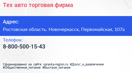 Тех-авто, торговая фирма по адресу Ростовская область, Новочеркасск, Первомайская, 107а в дальнейшем Организация, размещена в следующих категориях: