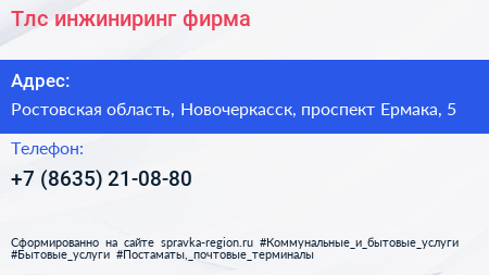 Тлс-инжиниринг, фирма по адресу Ростовская область, Новочеркасск, проспект Ермака, 5 в дальнейшем Организация, размещена в следующих категориях: