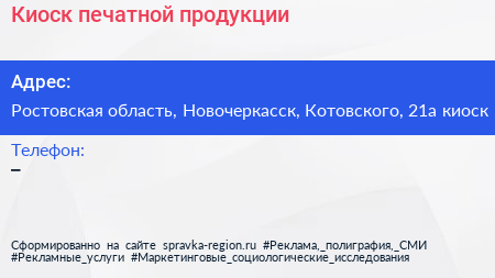 Киоск печатной продукции по адресу Ростовская область, Новочеркасск, Котовского, 21а киоск в дальнейшем Организация, размещена в следующих категориях: