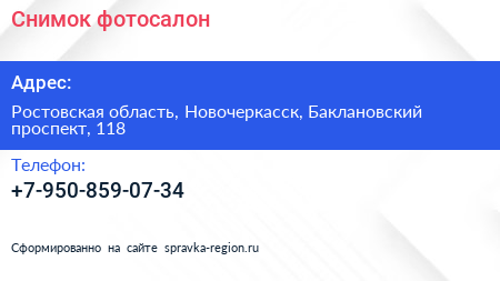 Снимок, фотосалон по адресу Ростовская область, Новочеркасск, Баклановский проспект, 118 в дальнейшем Организация, размещена в следующих категориях:
