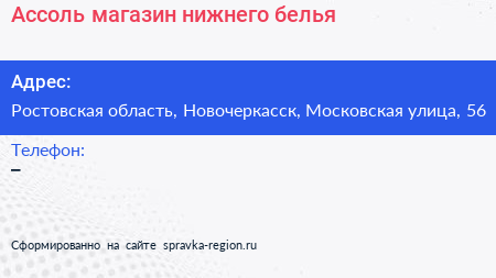 Ассоль, магазин нижнего белья по адресу Ростовская область, Новочеркасск, Московская улица, 56 в дальнейшем Организация, размещена в следующих категориях: