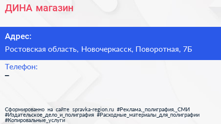 ДИНА, магазин по адресу Ростовская область, Новочеркасск, Поворотная, 7Б в дальнейшем Организация, размещена в следующих категориях: