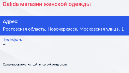 Dalida, магазин женской одежды по адресу Ростовская область, Новочеркасск, Московская улица, 1 в дальнейшем Организация, размещена в следующих категориях: