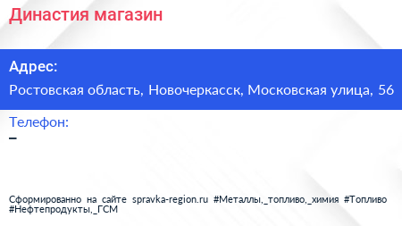 Династия, магазин по адресу Ростовская область, Новочеркасск, Московская улица, 56 в дальнейшем Организация, размещена в следующих категориях: