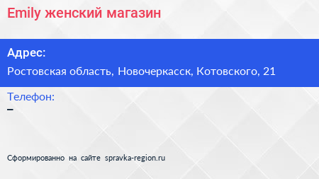 Emily, женский магазин по адресу Ростовская область, Новочеркасск, Котовского, 21 в дальнейшем Организация, размещена в следующих категориях: