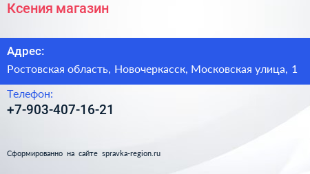 Ксения, магазин по адресу Ростовская область, Новочеркасск, Московская улица, 1 в дальнейшем Организация, размещена в следующих категориях: