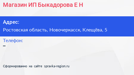 Магазин, ИП Быкадорова Е.Н. по адресу Ростовская область, Новочеркасск, Клещёва, 5 в дальнейшем Организация, размещена в следующих категориях: