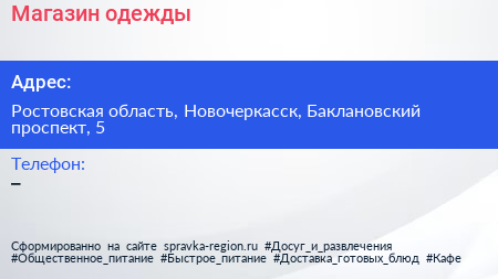 Магазин одежды по адресу Ростовская область, Новочеркасск, Баклановский проспект, 5 в дальнейшем Организация, размещена в следующих категориях:
