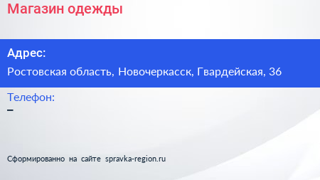 Магазин одежды по адресу Ростовская область, Новочеркасск, Гвардейская, 36 в дальнейшем Организация, размещена в следующих категориях: